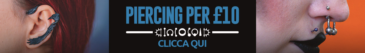 Blue Banana è il nome di un’azienda consolidata ed affidabile quando si parla di piercing, con più di 70.000 piercing effettuati ogni anno. I membri del nostro staff prendono parte a corsi di formazione completi sui piercing per assicurare la massima sicurezza sia in fase di trattamento nel nostro studio che per quanto riguarda i consigli professionali nelle cure successive. Il nostro staff ha la competenza per poter rispondere a tutte le domande e la passione per stili alternativi ed è preparato ad aiutarti con tutti i tuoi outfit, con la colorazione dei capelli o i piercing. Guarda il nostro elenco completo di piercing alla pagina Informazioni sui Piercing e per conoscere i limiti di età ed i prezzi.